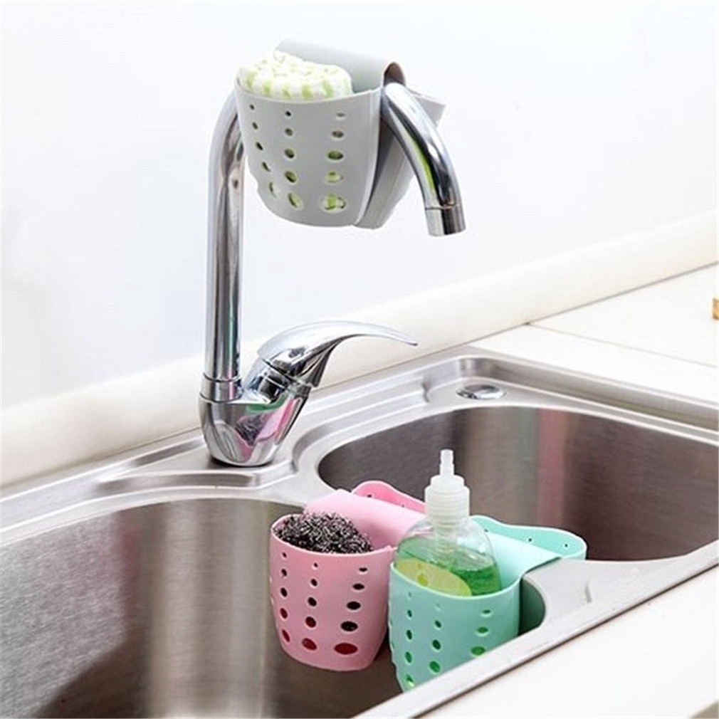 Portable Home Kitchen Bathroom Sink Sponge Hanging Pvc Shelving Rack Drain Faucet Storage Pail Shelves Tools Holder Shopee Indonesia